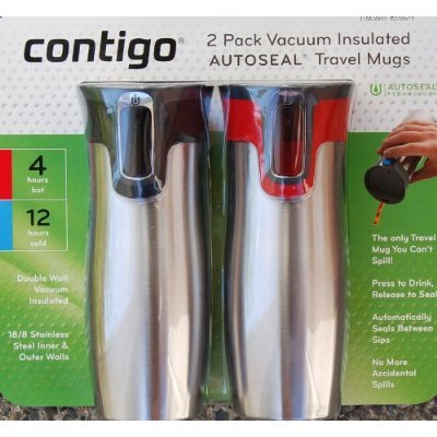 Buy Contigo 2 Pack 16 Oz Double Wall Vacuum Insulated Autoseal Stainless Steel Travel Mugs - (Red & Black Top) Now