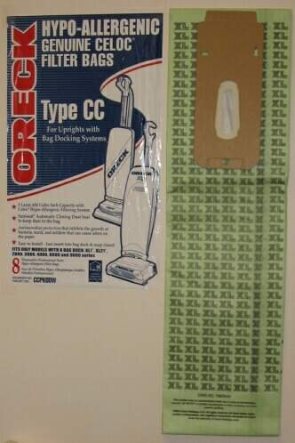 Huge 8 pack of Genuine Oreck upright Bags with Micron Filtration. Fits all Oreck Models With Bag Docking System XL7 XL21 2000 3000 4000 8000 9000 Series. Don't be fooled by Generic bags. Genuine Oreck bags are far superior in quality and fit your machine correctly. Ever had your bags come off? You were probably useing the wrong bag. 3 layer 630 Cubic inch Capacity with Celoc Hypo-Allergenic Filtering System.