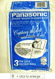 - Package of 3 genuine Panasonic upright vacuum cleaner bags- 2-ply construction with high-efficiency liner