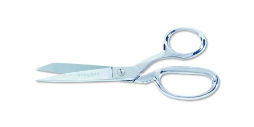 Seven inch knife edge dressmaker's shears by Gingher. Features a medium length cut which is ideal for cutting patterns and general sewing. Knife edge cuts multiple layers of fabric. Bent handles create a comfortable working position. Features durable double-plated chrome over nickel finish.