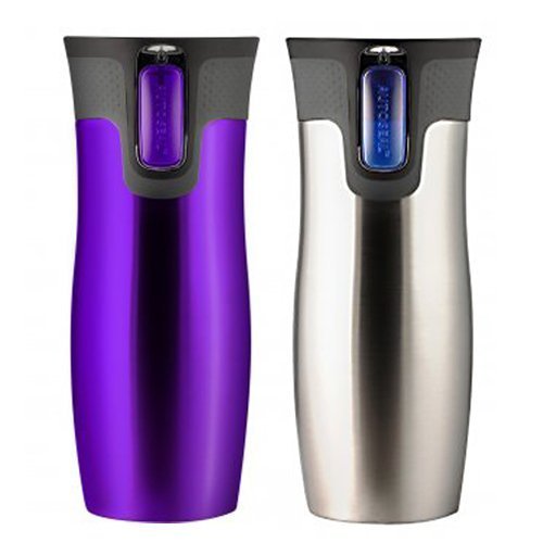 Buy Double Wall Vacuum Insulated Travel Mugs *(2 Pack Purple and Stainless)* Now